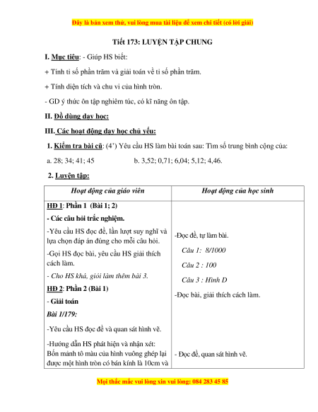 Giáo án Bài 173 Toán lớp 5: Luyện tập chung (Trang 179)