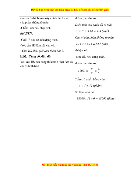 10 x 10 x 3,14 = 314 (cm2) Bài 2/179: