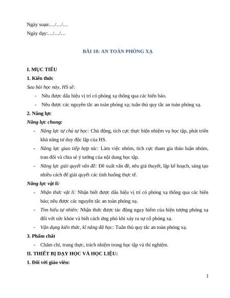 BÀI 18: AN TOÀN PHÓNG XẠ I. MỤC TIÊU 1. Kiến thức