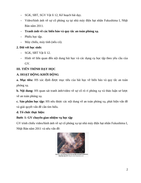 - Nêu được các nguyên tắc an toàn phóng xạ; tuân thủ quy tắc an toàn phóng xạ. 2. Năng lực