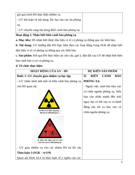 - Nêu được dấu hiệu vị trí có phóng xạ thông qua các biển báo.