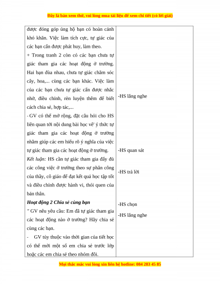 hoạch nhỏ” - sáng tác: Phong Nhã),... gắn với bài học “Tự giác tham gia các hoạt động ở trường”;