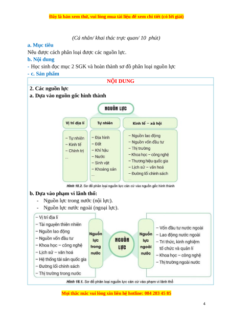 Nêu được cách phân loại được các nguồn lực. b. Nội dung