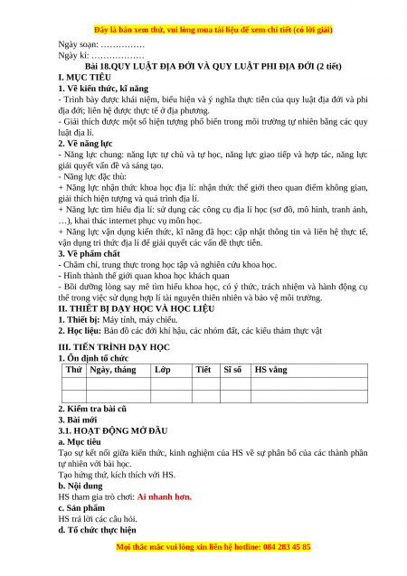 Bài 18.QUY LUẬT ĐỊA ĐỚI VÀ QUY LUẬT PHI ĐỊA ĐỚI (2 tiết) I. MỤC TIÊU