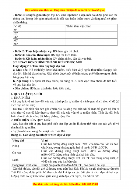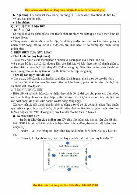 c.Sản phẩm: HS hoàn thành tìm hiểu kiến thức: I. QUY LUẬT ĐỊA ĐỚI 1. KHÁI NIỆM