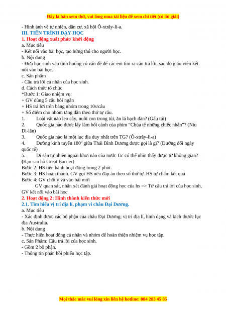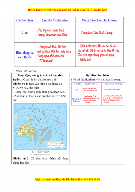 - Xác định được các bộ phận của châu Đại Dương; vị trí địa lí, hình dạng và kích thước lục địa Australia. b. Nội dung