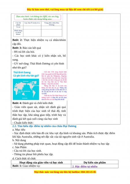 2.2. Tìm hiểu đặc điểm tự nhiên của châu Đại Dương a. Mục tiêu