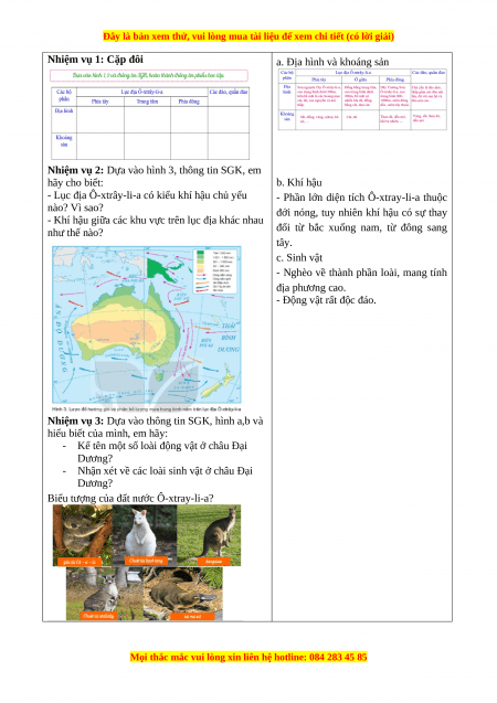 khí hậu Australia, những nét đặc sắc của tài nguyên sinh vật ở Australia. b. Nội dung