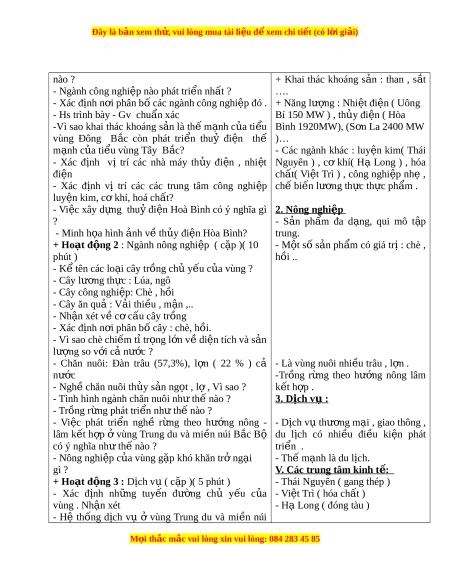 ả đồ tư duy – phụ và chế bi n ế khoáng s n ả , th y ủ đi n ệ lục) . - Vùng có ti m ề năng phát tri n ể ngành công nghi p ệ - Các ngành phát tri n : ể M i ọ thắc m c