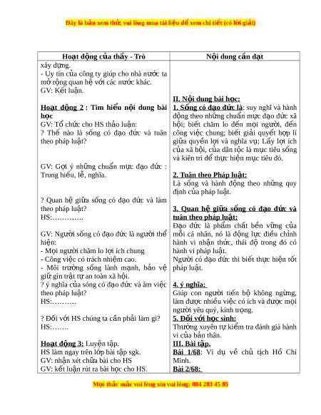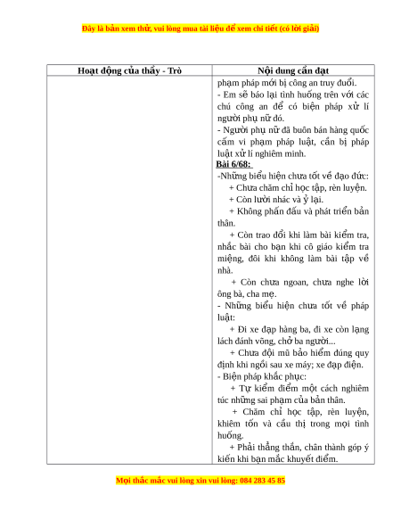 Đây là bản xem th , vu ử i lòng mua tài li u ệ đ xe ể m chi ti t (c ế ó l i ờ gi i ả ) Hoạt đ ng c ộ a t ủ h y - ầ Trò N i ộ dung cần đ t ạ - Hành vi bi u ể hi n ệ là ngư i ờ có đ o ạ đ c: