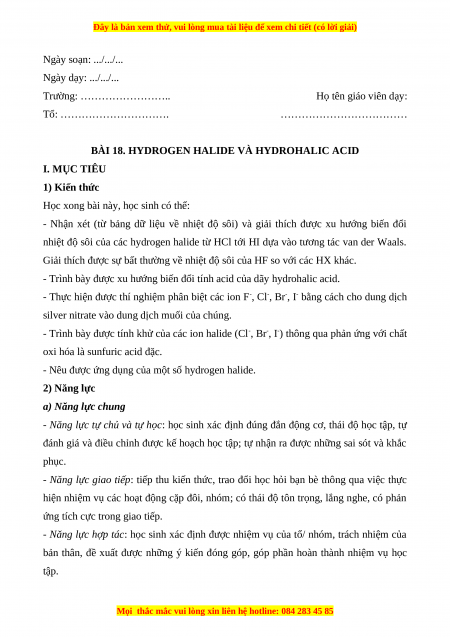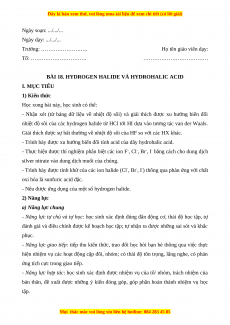 BÀI 18. HYDROGEN HALIDE VÀ HYDROHALIC ACID I. MỤC TIÊU 1) Kiến thức