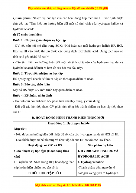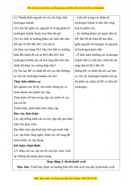 chủ yếu là: “Tìm hiểu xu hướng biến đổi một số tính chất của hydrogen halide và
