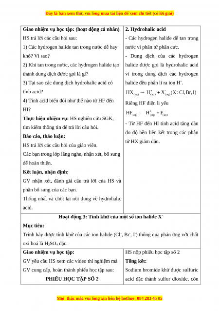 chủ yếu là: “Tìm hiểu xu hướng biến đổi một số tính chất của hydrogen halide và hydrohalic acid”.