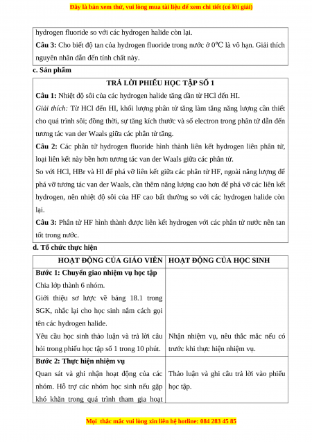 Câu 1: Nhiệt độ sôi của các hydrogen halide tăng dần từ HCl đến HI.