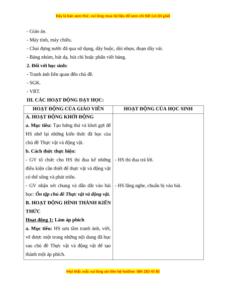 - Vận dụng được kiến thức về thực vật và động vật để đề xuất việc làm cụ thể trong