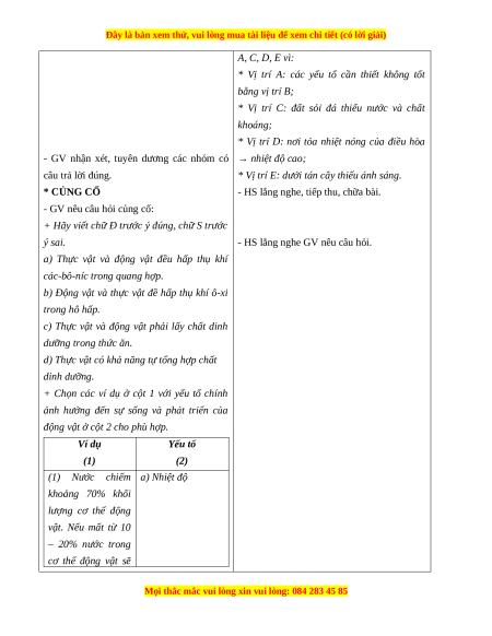 - Nhận biết được vai trò của các yếu tố cần cho sự sống, phát triển của thực vật, động vật và