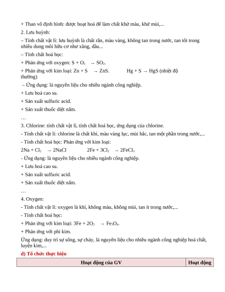 2. Lưu huỳnh: tính chất vật lí, tính chất hoá học (viết phản ứng minh hoạ), ứng dụng của lưu huỳnh.