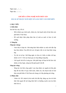 BÀI 18: KĨ THUẬT NUÔI MỘT SỐ LOÀI THỦY SẢN PHỔ BIẾN I. MỤC TIÊU 1. Kiến thức