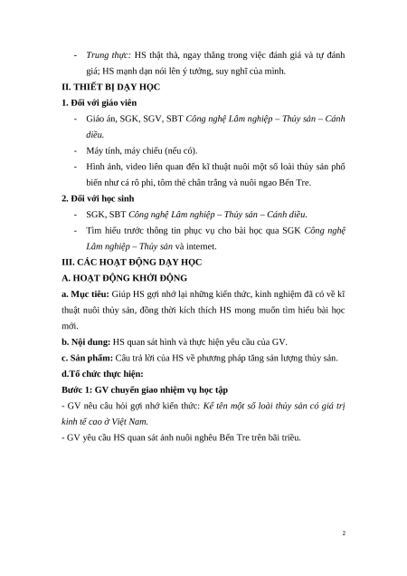 - Bộ giáo án Công nghệ Lâm nghiệp - Thủy sản 12 Cánh diều năm 2024 mới, chuẩn nhất được thiết kế theo phong cách hiện đại, đẹp mắt, trình bày chi tiết cho từng bài học và bám sát chương trình Sách giáo khoa Công nghệ 12 Cánh diều.
