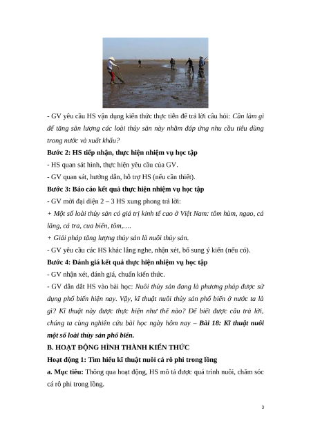 Giáo án Bài 18: Kĩ thuật nuôi một số loài thuỷ sản phổ biến Công nghệ 12 Cánh diều