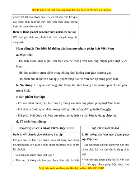 Hoạt động 1: Tìm hiểu hệ thống pháp luật a. Mục tiêu: