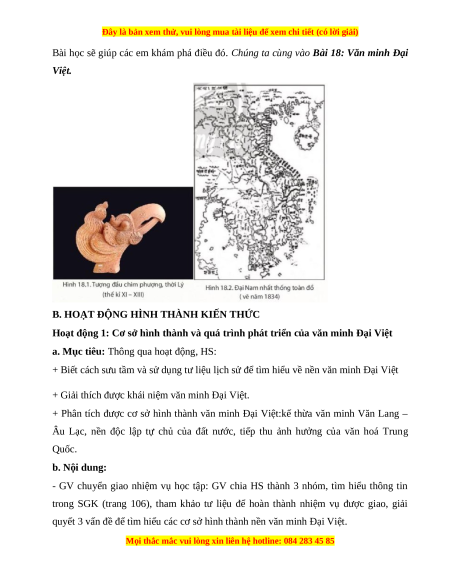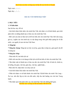 BÀI 18: VĂN MINH ĐẠI VIỆT I. MỤC TIÊU 1. Về kiến thức Sau bài học này, HS sẽ: