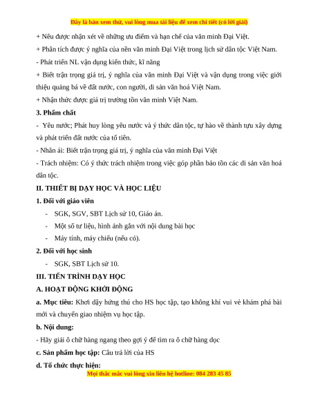+ Nhận thức được giá trị trường tồn văn minh Việt Nam. 3. Phẩm chất