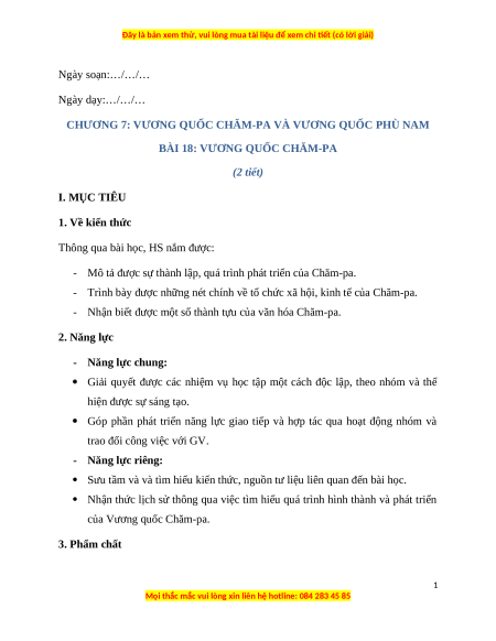 BÀI 18: VƯƠNG QUỐC CHĂM-PA (2 tiết) I. MỤC TIÊU 1. Về kiến thức