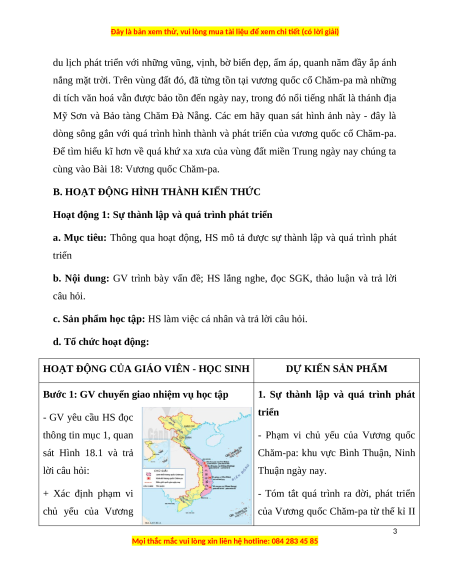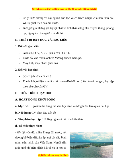 Giáo án Bài 18 Lịch sử 6 Cánh diều (2024): Vương quốc Chăm Pa