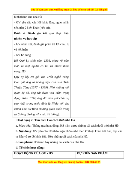 b. Nội dung: GV yêu cầu HS đọc tư liệu để tìm hiểu về quá trình thành lập nhà Hồ.