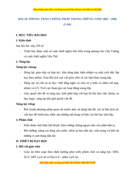 BÀI 18: PHONG TRÀO CHỐNG PHÁP TRONG NHỮNG NĂM 1885 - 1896 (2 tiết)
