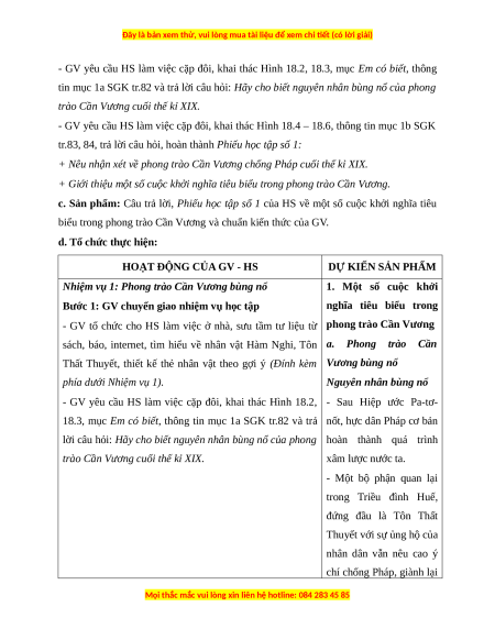 - Giới thiệu được một số cuộc khởi nghĩa tiêu biểu trong phong trào Cần Vương. b. Nội dung: