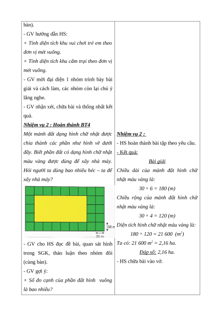 - HS giải quyết đực một số vấn đề thực tiễn gắn với số đo diện tích.