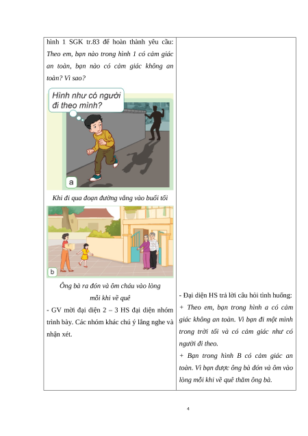 Hoạt động 1: Tìm hiểu về cảm giác an toàn