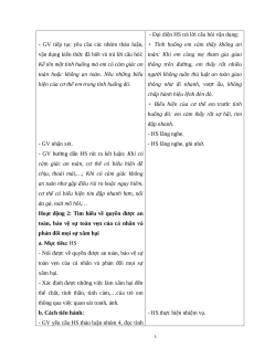 - Nói được về cảm giác an toàn và quyền được an toàn, bảo vệ sự toàn