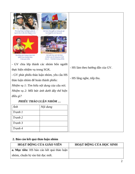 PHIẾU THẢO LUẬN NHÓM … Ảnh Nội dung Tranh 1 Tranh 2 Tranh 3 Tranh 4