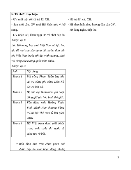 - GV nhận xét, khen ngợi HS và chốt đáp án: Nhiệm vụ 1:
