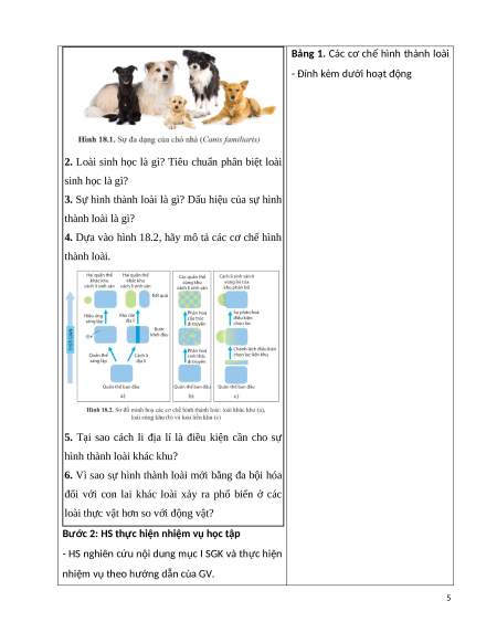 - GV sử dụng kĩ thuật dạy học theo trạm, chia lớp 1. Khái niệm loài sinh học