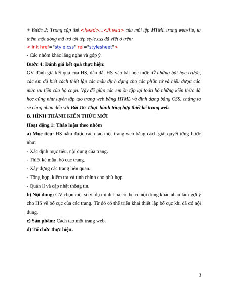 Giáo án Bài 18: Thực hành tổng hợp thiết kế trang web Tin học 12 Kết nối tri thức