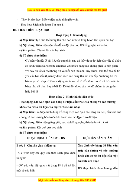 - GV trình bày các quy ước theo sách giáo khoa khóa cho cơ sở dữ liệu của một trang 86 website âm nhạc