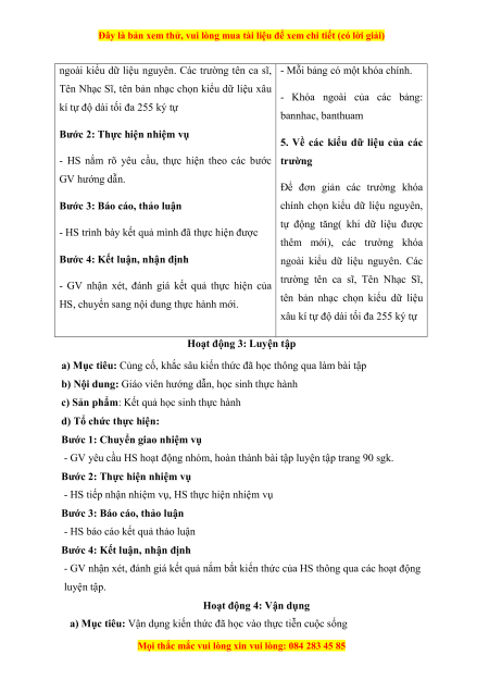 - Gv lưu ý ở mục 5: Để đơn giản các trường khóa idBannhac, idCasi)