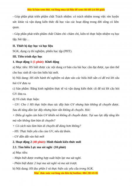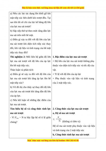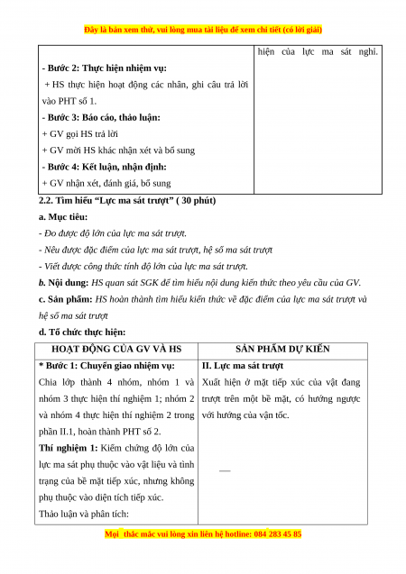 2.2. Tìm hiểu “Lực ma sát trượt” ( 30 phút) a. Mục tiêu: