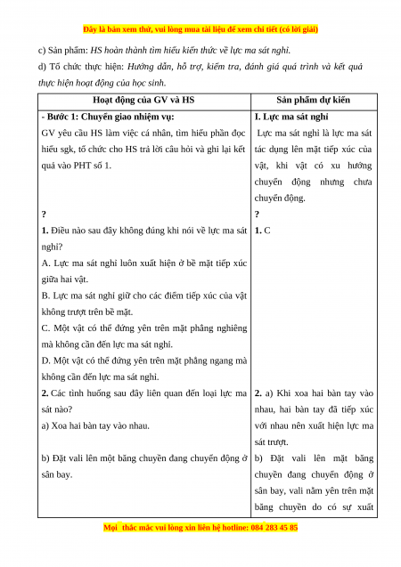 2.1. Tìm hiểu Lực ma sát nghỉ (10 phút) a) Mục tiêu: