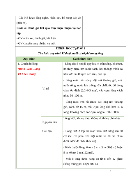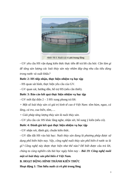 Hoạt động 1: Tìm hiểu nuôi cá rô phi trong lồng 3