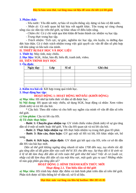 - Phân tích được biểu đồ, số liệu thống kê về dân số; xử lí số liệu. 2. Năng lực: * Năng lực chung: