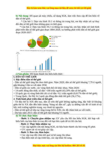 c) Sản phẩm: HS hoàn thành tìm hiểu kiến thức: I. DÂN SỐ THẾ GIỚI