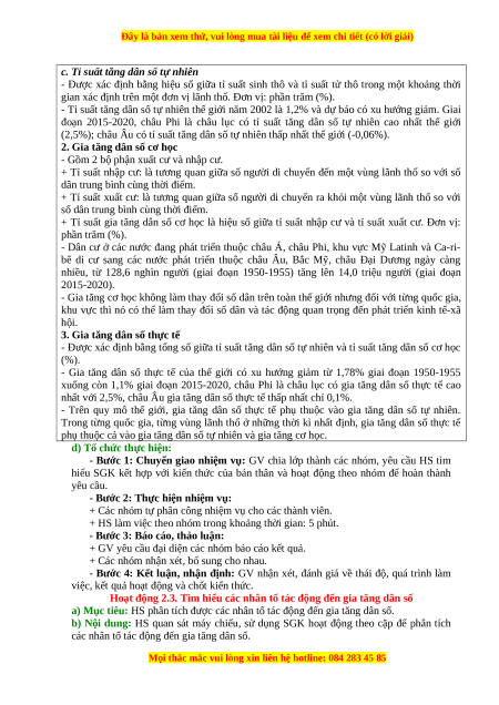 - Trình bày được khái niệm về gia tăng dân số thực tế; phân tích được các nhân