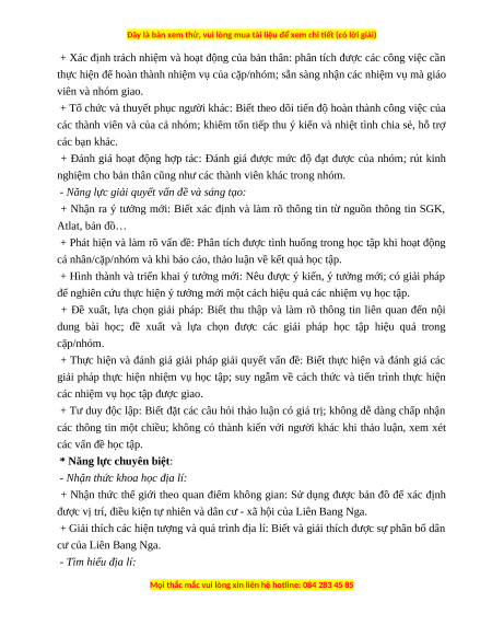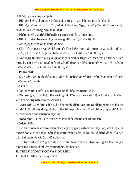 nhiên và dân cư - xã hội của Liên Bang Nga. 3. Phẩm chất: