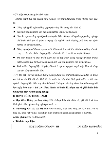 - Vẽ được biểu đồ, nhận xét và giải thích tình hình phát triển ngành công nghiệp ở nước ta. 2. Năng lực
