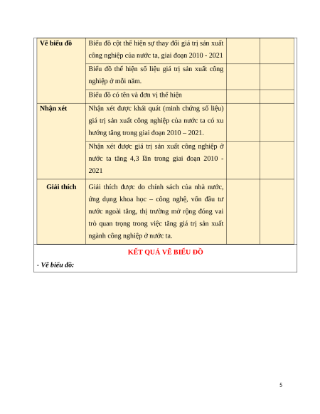 - Tìm hiểu địa lí: vẽ được biểu đồ, nhận xét tình hình phát triển ngành công